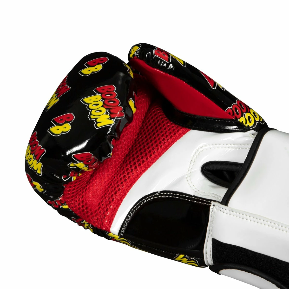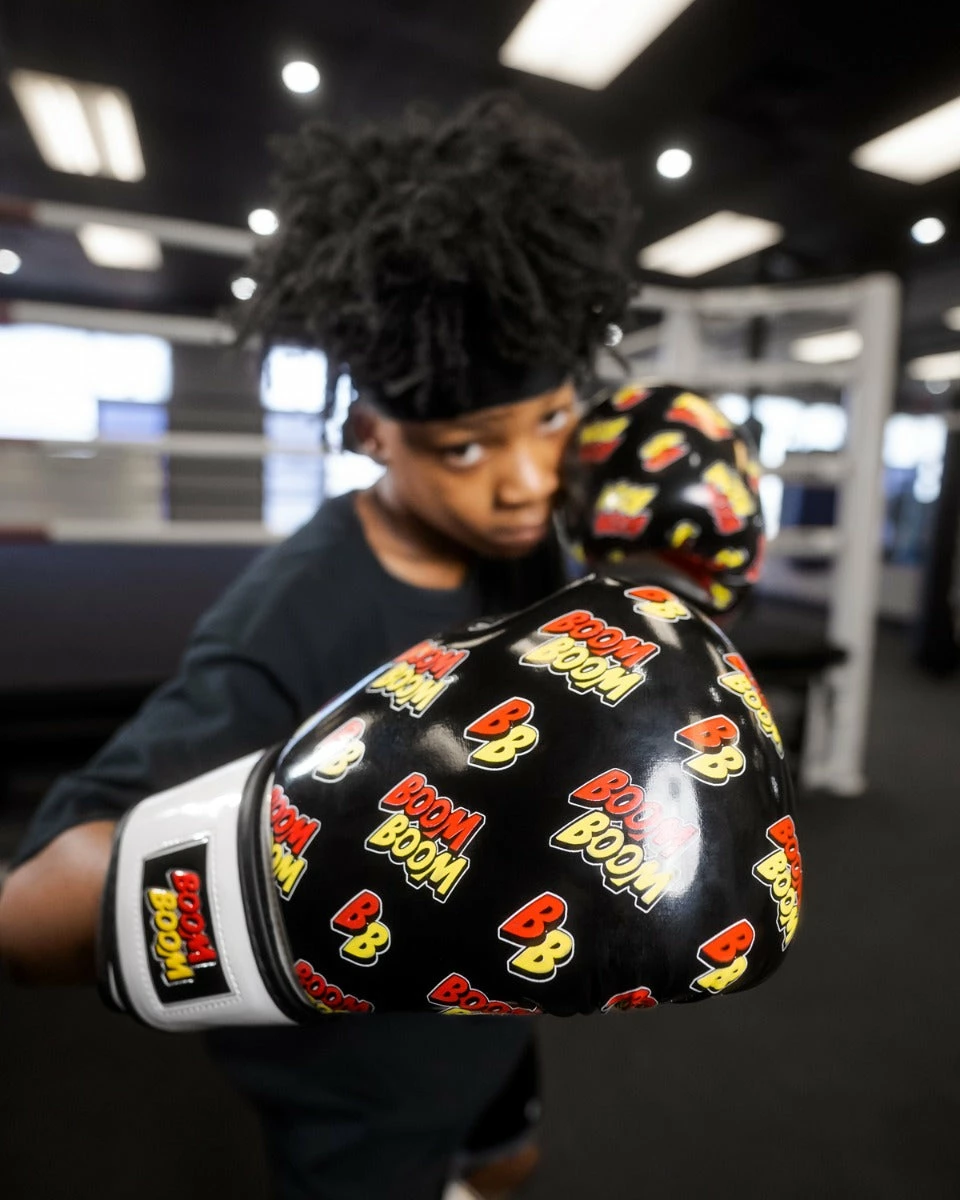 BOOM BOOM Boxing Youth Gear is engineered and crafted exclusively for youths and young training demands.  Injected molded foam technology provides high density sponge foam that delivers a lighter, anatomically correct, internal core for maximum comfort and fist protection. Pre-curved design allows young hands to sit in a natural position causing less hand fatigue and extended workouts. 360-degree extra-wide wraparound wrist strap with hook-and-loop closure assures a secure, no-slip, custom fit for every child. Easy on and off.  Satin nylon hand liner is extremely comfortable and repels moisture absorption inside the gloves. Ideal for all heavy bag training, bag work, punch mitts and more. Three ideal Youth Sizes.Â