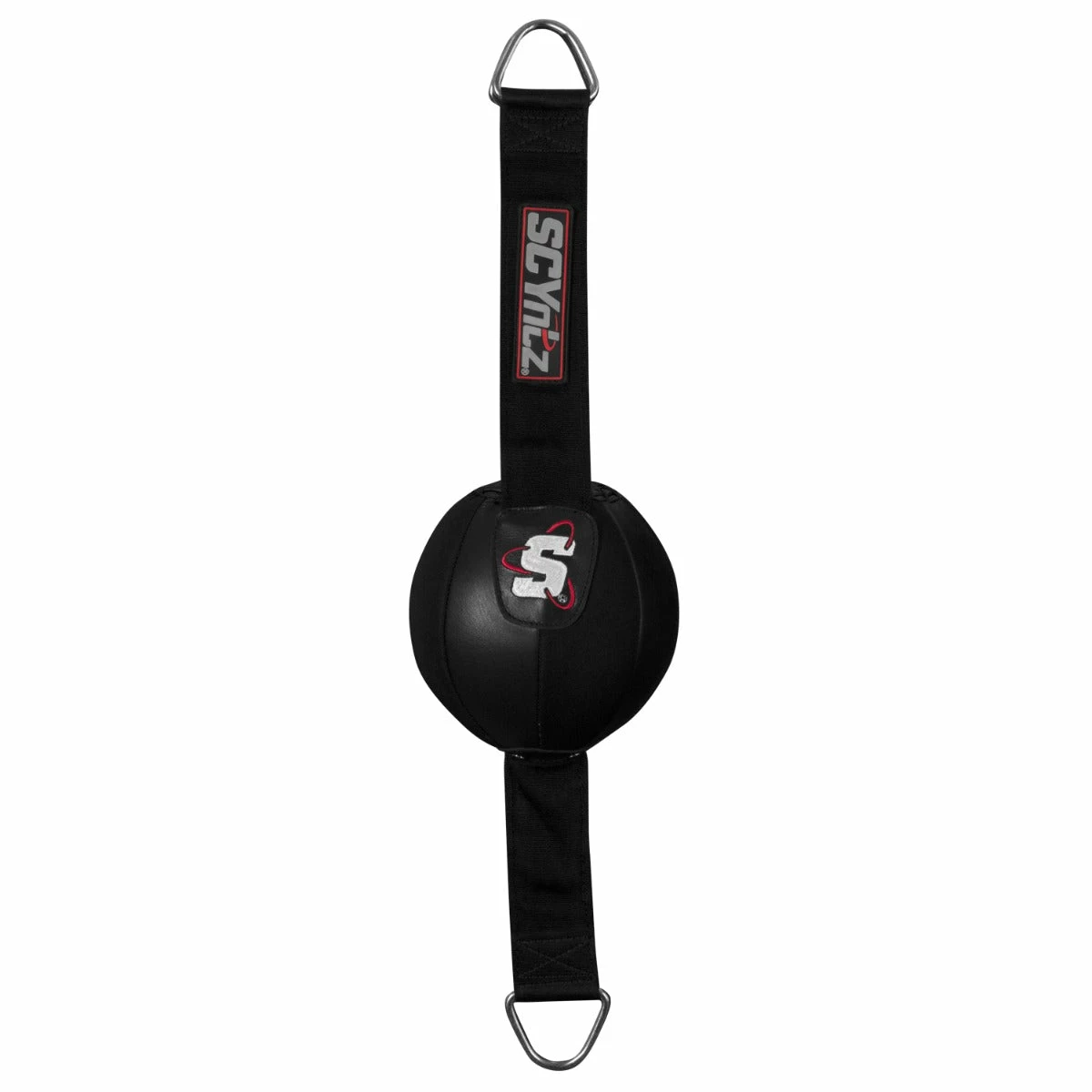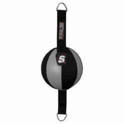 Step up your game with one of the best double end bags ever created. The SCYntz Leather Double End Bag is constructed from both genuine leather and neoprene to create one of the fastest double end bags that modern technology can produce. The bag is constructed from eight even panels to make sure that you have a perfectly round and well-balanced target no matter what angle you are at. The bag comes complete with a 36” rubber cable to secure the bottom of the bag, 11” dual straps on the top for balance and a 26” adjustable nylon strap attachment to make sure your bag – your opponent – doesn’t go anywhere. Offered in three sizes: Black – 6″, Red/Black – 8″ and Grey/Black – 10″