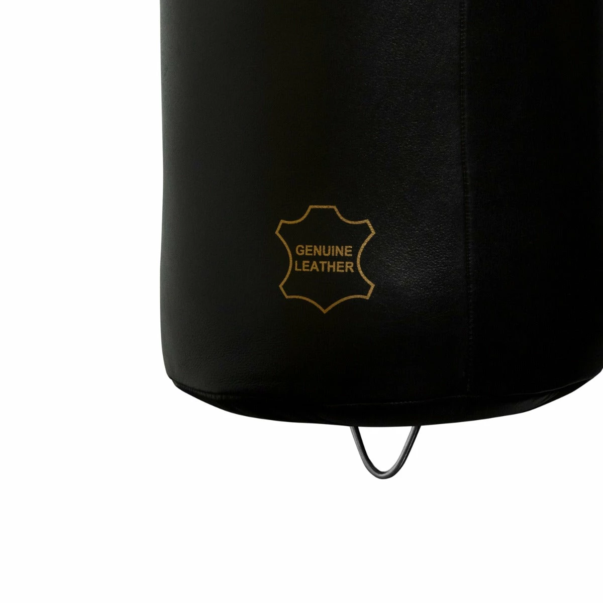100% full grain leather cover is super strong and durable to provide maximum longevity and top results. Inside 2″ poly rubber liner provides an ideal striking surface and increased hand protection. Specially blended poly-fiber filler is professionally packed to provide resilient shock absorbency and maintain a firm, cylindrical shape for life. Center aligned weight is precision placed for maximum force dispersion and balance. Includes four triple reinforced hanging D-rings on top with durable seat belt nylon hanging straps to alleviate chains and excess noise. Includes a tie-down D-ring on the bottom for securing the bag to the floor, if desired. This is the heavy bag that has outfitted professional gyms and institutions for more than a decade. Swivel sold separately.