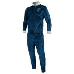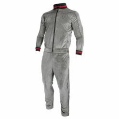 Whether you’re chillin’ on the couch or training to become the next world champion, do it in comfort and class. Constructed of a soft velour fabric for a touch of “old school” fashion. Great for teams or personal use. Features a zippered front and elastic waist.