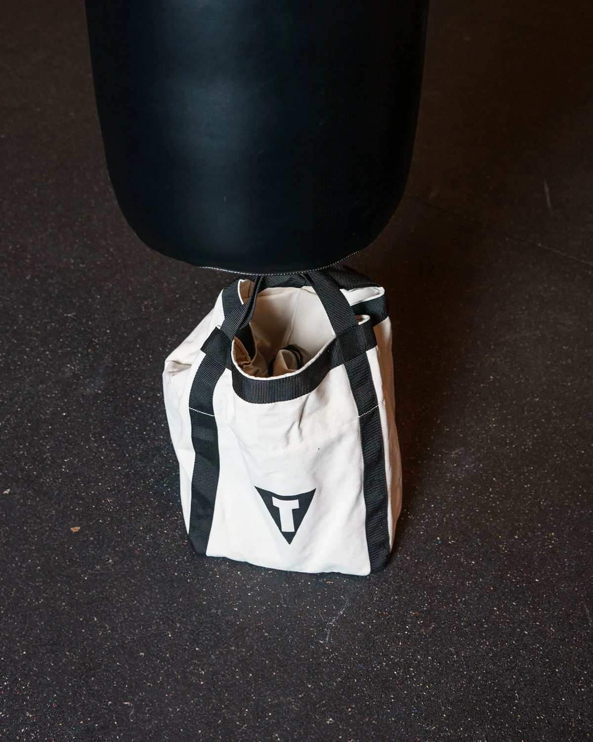 Weigh down your double-end or heavy bag with the most versatile option ever! Constructed with heavy-duty canvas and reinforced nylon straps. Includes internal drawstring pocket to secure weights and sandbags. The compact design doesn’t get in the way of your footwork. Anchor measures 12” x 12” wide x 10” tall and will hold up to approximately 60-70lbs.