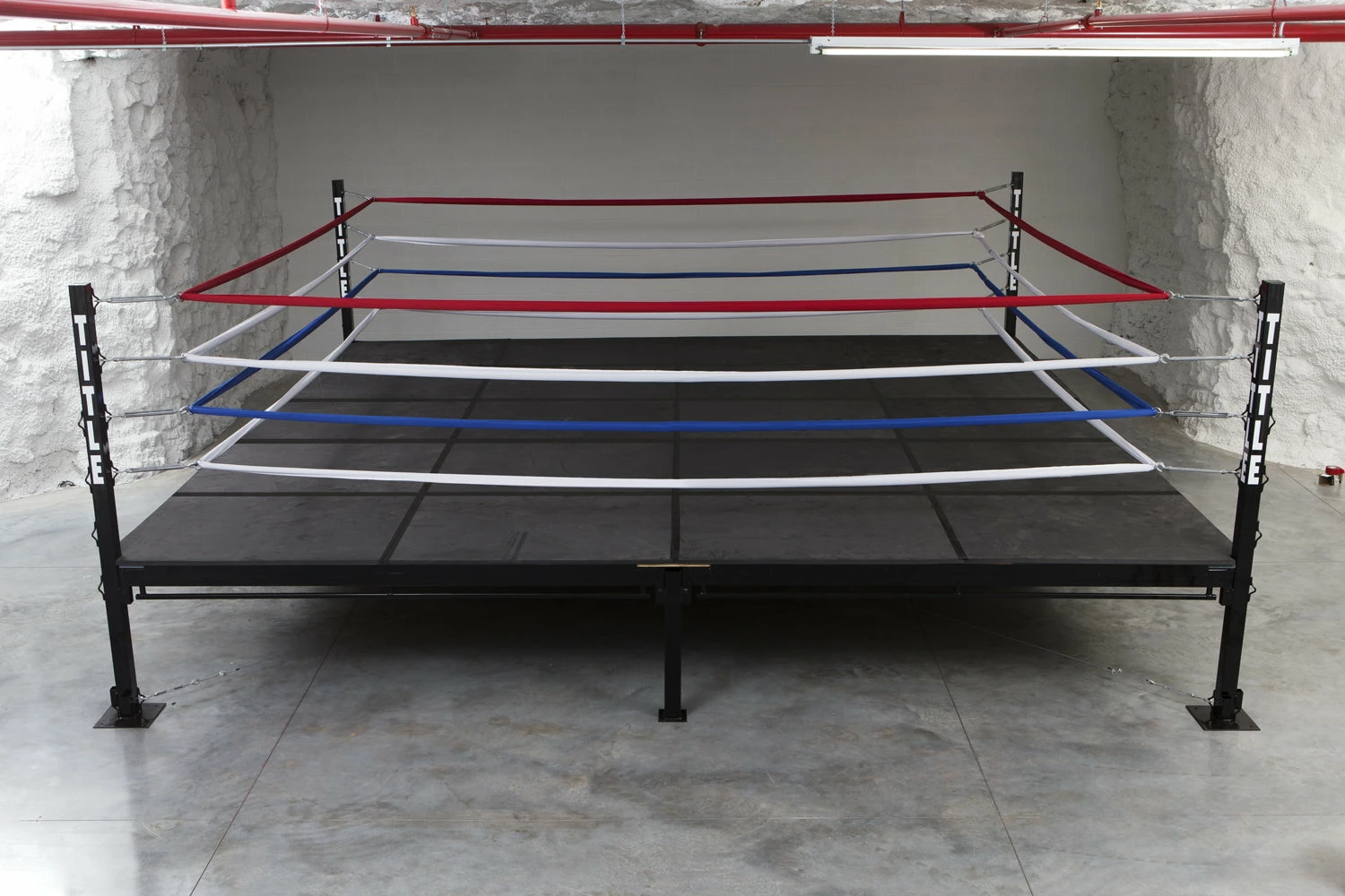 The pinnacle of boxing rings now combines an officially sanctioned amateur and professional boxing competition ring with a convertible floor level training ring for the ultimate multipurpose ring in the world. The frame and corner posts are manufactured with heavy gauge steel to withstand the rigors of the highest level of competition and daily gym training. Advanced Drop-N-Lock assembly feature allows for quicker installation with only minimal hardware required. Sets up at elevated USA Boxing and professional boxing sanctioning commission regulations 36” floor height for shows, competitions and bouts, and then convert to 12” floor level height for use in the gym.