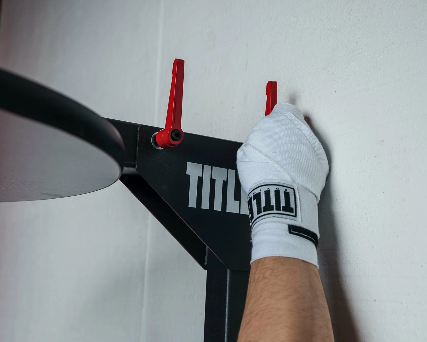 Finally, a speed bag platform that folds away between uses to conserve space and keep training, workout and traffic areas open when not in use. Features an advanced and upgraded 16” vertical adjustable steel L-frame that allows adjustment for any size athlete with two security turn knobs. An almost 1” melamine covered wooden drum delivers excellent responses, rapid rebounds and super speed. When finished training, the round platform can be easily folded inward with two pull-pins to open up space in the basement, garage, training area or gym. Thicker 11-gauge mounting steel, plus added attachment holes increases stability. An easy to assemble speed bag platform that delivers excellent results and quick action from the pro style platform. A professional style swivel is included to assure superior results. Quickly adjusts for all users from youth to large adult. Masonry wall attachment hardware included. Speed Bag not included.