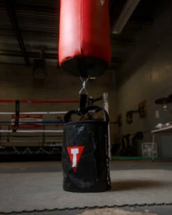 Step into range and step up your game. The TITLE Boxing Inside Work Bag Anchor is designed so that you can get closer to the bag and work on the inside more effectively to practice more compact punches. Adjust the closure on the TITLE Boxing Inside Work Bag Anchor to change the height with the reinforced nylon straps that are made to withstand your power.Fills with sand or gravel to weight down heavy bags and training bags to the floor, allowing athletes to get closer to the bag — inside training — without affecting footwork. Ships unfilled.  Â