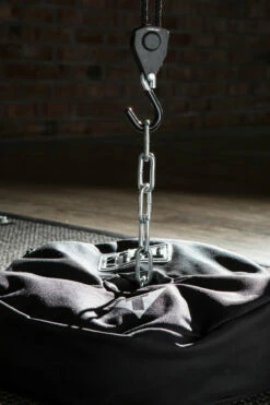 The ideal way to adjust the double end bag to the perfect height for every athlete from youth to super heavyweight in seconds. Industrial strength, patented system, has a simple ratchet finger adjustment that pulls tight, locks in place and will never break, slip or rust. Coated steel hooks are built for professional use. A full 8-feet of 1/4″ thick coated nylon – 150 lbs. break strength – rope. Simply press the finger tab, adjust the bottom rope so the double end bag is at your preferred height and lock in place. Built for gym and home use. Easily and securely customizes double end bags to every athlete in seconds.