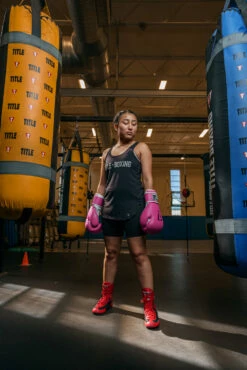 Full synthetic leather upper with tight weave nylon fill sits atop sculpted polyurethane soles designed exclusively for boxing. Built for quick footwork and speed. Beautiful embroidery complements any style. Approximate 6″ height is ideal.