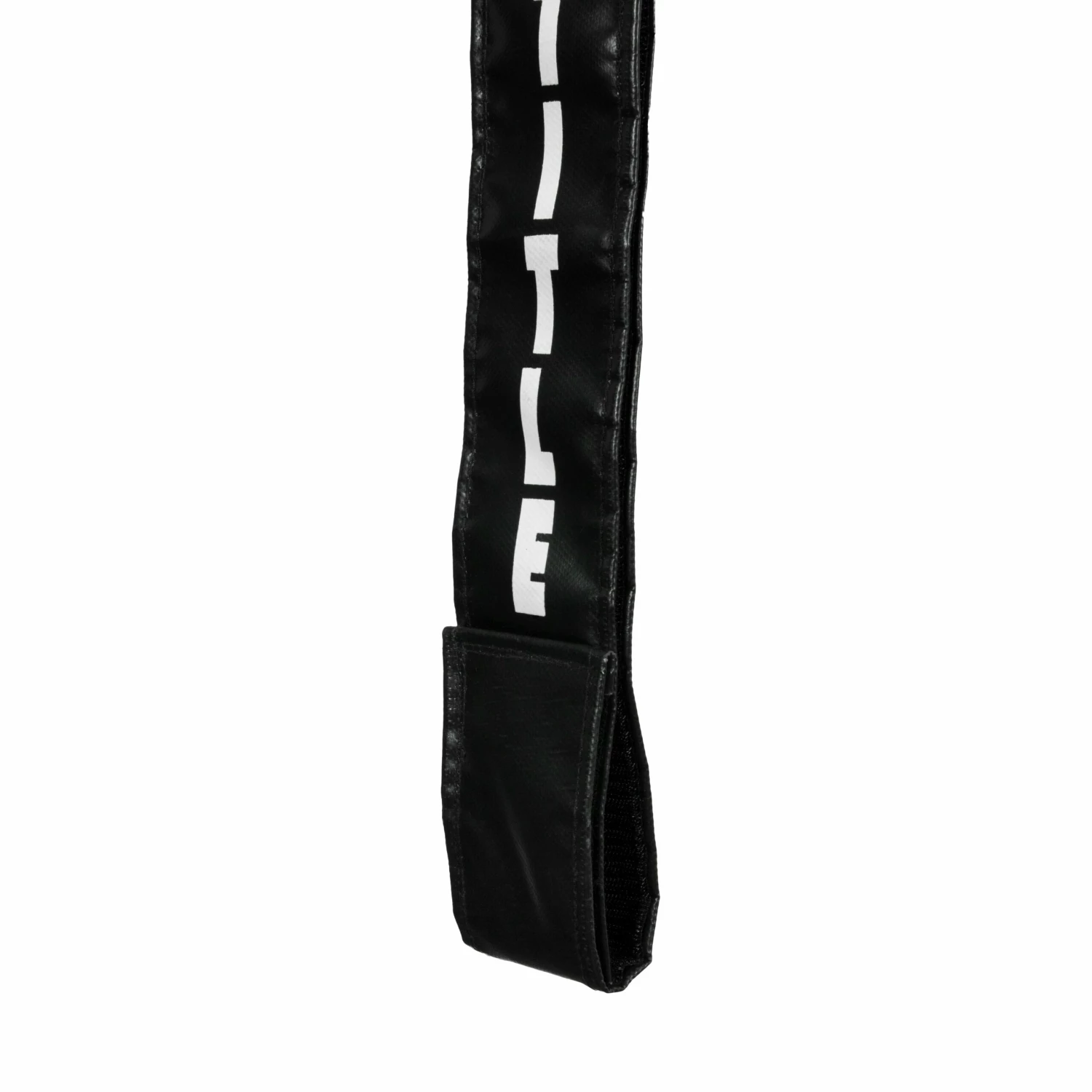Extra think, 2.5” wide tough vinyl material is completely lined inside with high quality, super strength hook-and-loop to attach to ring ropes with absolutely no slipping or movement. Simply fold over the top rope and secure the hook-and-loop sides between all the ropes and attach at the bottom, under the bottom rope. Guaranteed to stay intact and not slip or move. Helps keep ring ropes from separating during action and beautifully styles up your training and competition rings.