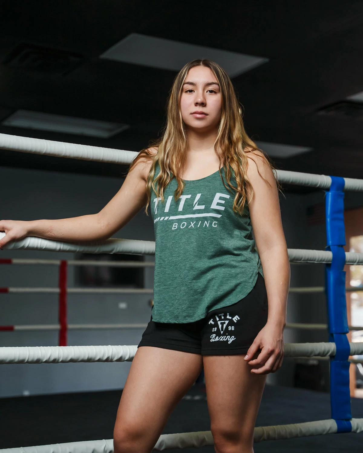 This TITLE Boxing scoop neck tank features a curved hem and is available in two colors! Stylish and functional, this tank is great for the gym!