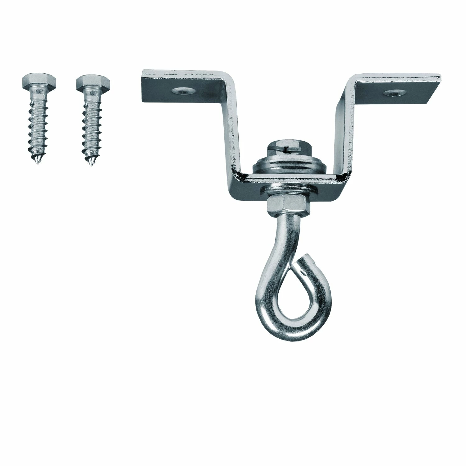 Industrial 3/16” steel wood beam ceiling mount hanger is ideal for all heavy bag mounting demands. Easily secures into ceiling joists to hang heavy bags for intense training. Includes a sealed ball-bearing swivel which allows the eye bolt to swivel or rotate, alleviating tangled chains and hanging straps. Ideal for all home heavy bag training. Two mounting lag bolts included. Holds heavy bags up to 150 lbs.