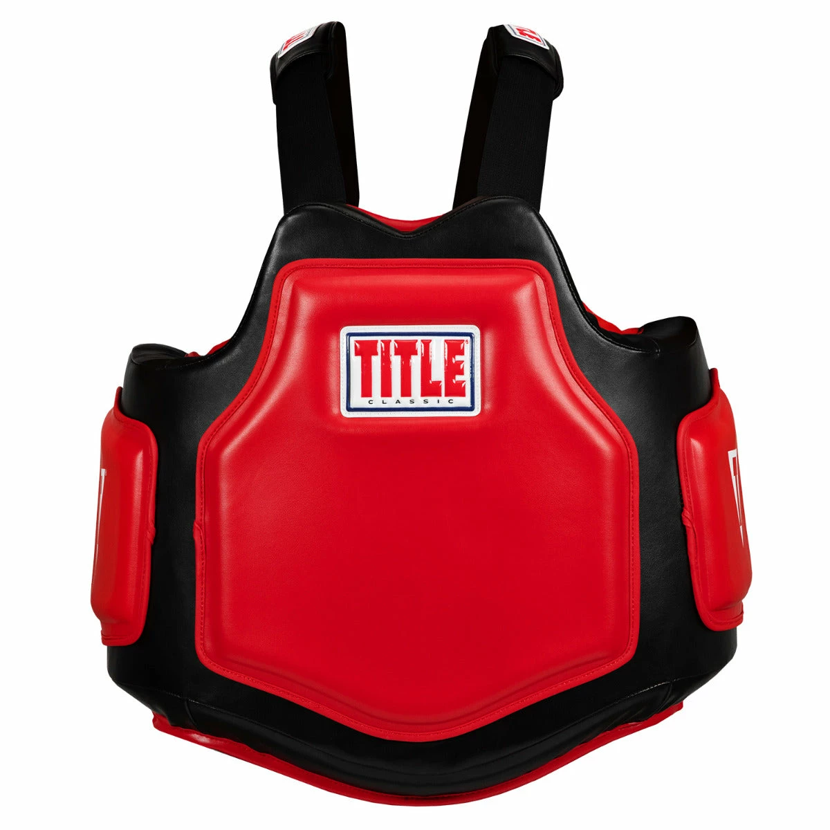All new technologically advanced lightweight, heavy duty, extremely protective training body protector . . . at an incredible price.  The advanced anatomical design is pre-curved and form fitting for all trainers.   Increased multi-layer foam padding is super shock absorbing for all punches, strikes and kicks.  Raised outer target zones are packed with dense, impact resistant foam for virtually no feel to trainers. Durable synthetic leather cover is crafted for round after round of punishment and comes back for more.  Complete with a moisture wicking inside liner to help keep trainers cool and dry during intense training sessions, adjustable padded shoulder straps and seatbelt nylon back straps with virtually unbreakable adjustable PVC plastic clips for a custom form fit that stays intact and secure during use.Â
