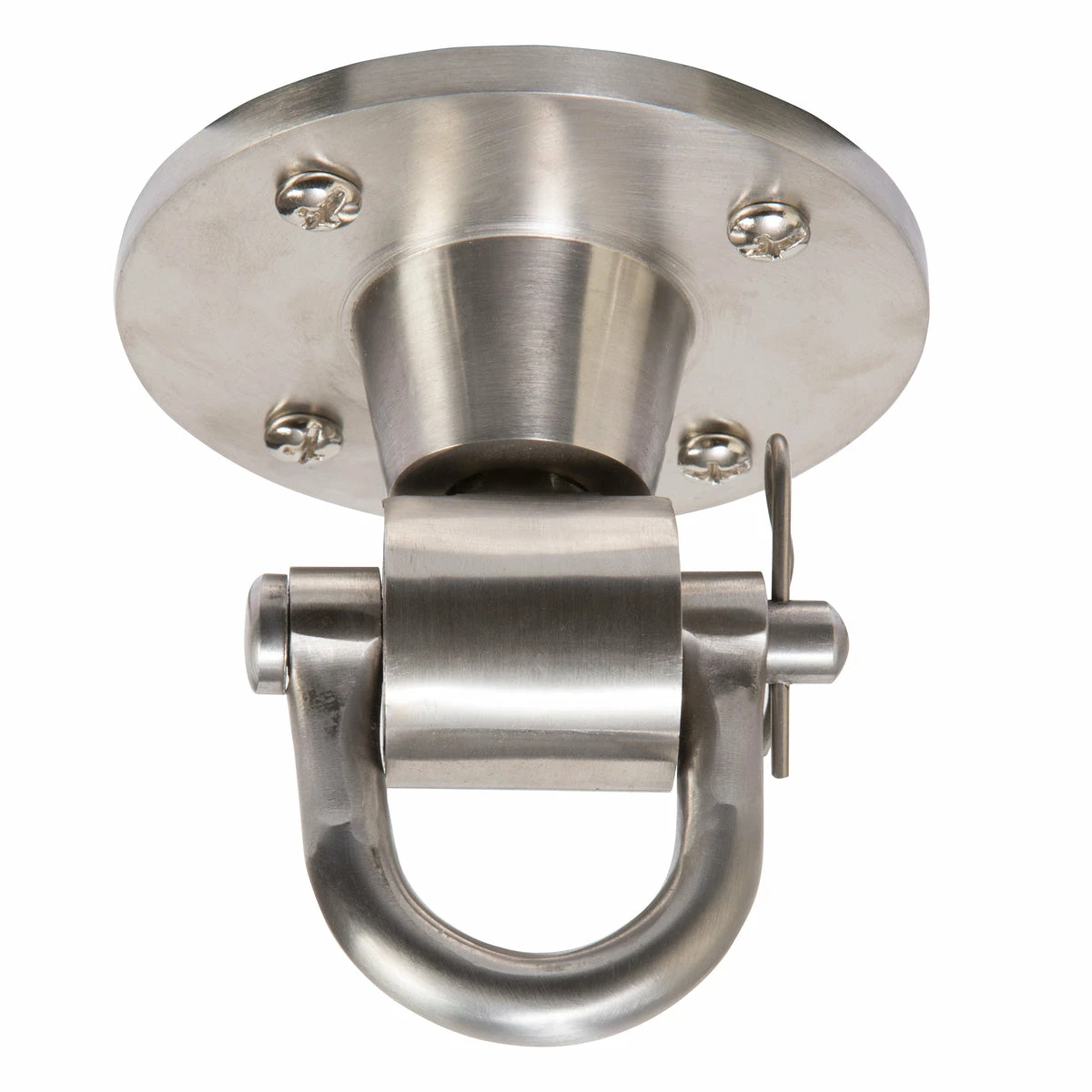 Oversized, extra thick, super high-quality brushed nickel professional swivel ensures lightning-fast and precision speed bag training with three sealed inner bearings craftsmanship designed for large gym use. Quick change U-clip and push-pin security allows instant speed bag removal and change to vary training and workouts. High-tech one-piece design assures smooth, efficient and secure action every time. Triple reinforced swivel rotates 360-degrees and is crafted for advanced and elite athletes with rapid strikes, true rebounds and super efficiency. The Platinum Advantage takes your speed bag training to the elite level. Includes 4 mounting screws.