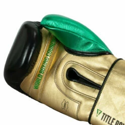 In the TITLE WBC Green Belt Training Gloves, you can train with the ultimate championship in mind. Honor one of the biggest organizations in boxing with a pair of handmade gloves constructed from 100% genuine cowhide leather in bold green, gold and black patterns. These boxing training gloves are designed with a secure closure to prevent slipping and a moisture wicking interior lining to get you back in the ring faster. The inset embossed TITLE and WBC labels help prevent nicks and cuts while in the ring. Officially licensed and approved by the World Boxing Council.