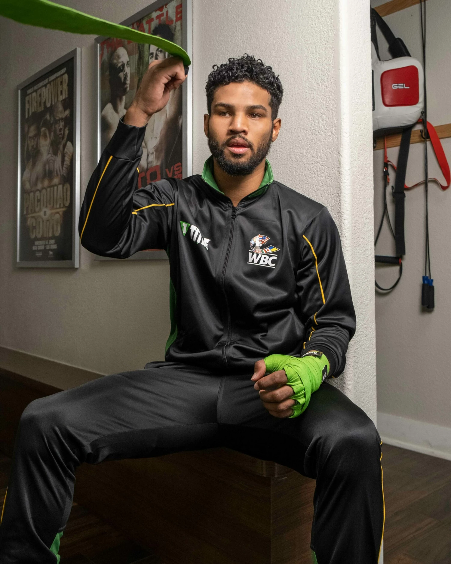 Whether it’s “fight day,” weigh-ins, workout time or walking around, always be suited-up for battle. Constructed from a lightweight “brushed” poly/matte material that “breathes” and allows you to work-up a sweat or wear out an about. Features two front pockets and one rear pocket to store your mouthpiece, your phone, your wallet or any valuables. Officially licensed and approved by the World Boxing Council.
